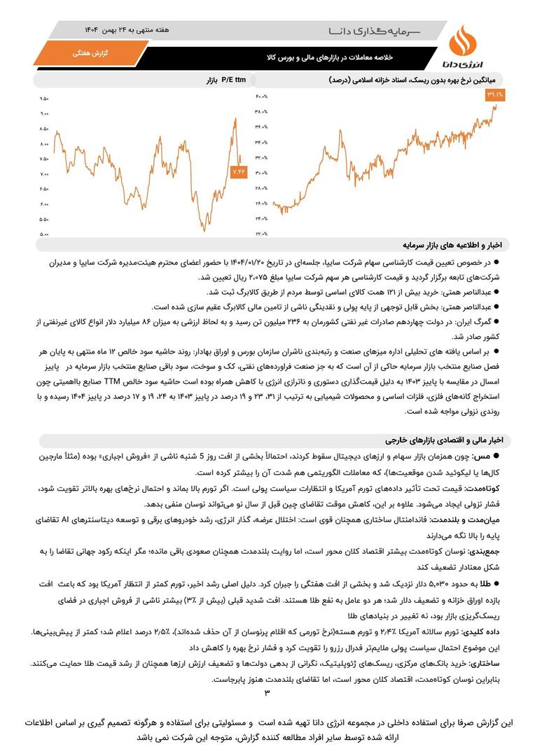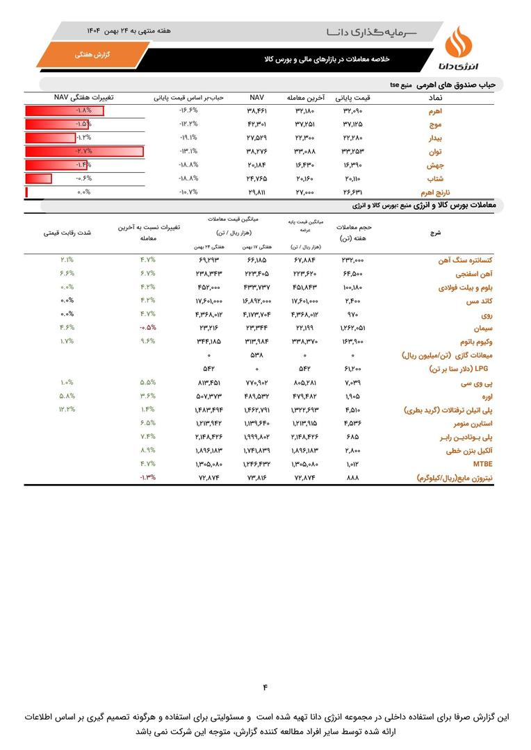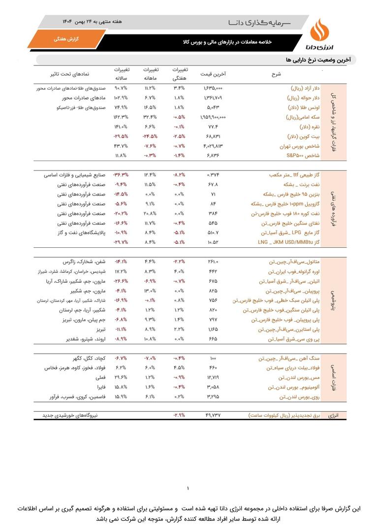 خلاصه معاملات در بازارهای مالی و بورس کالا به کوشش انرژی دانا